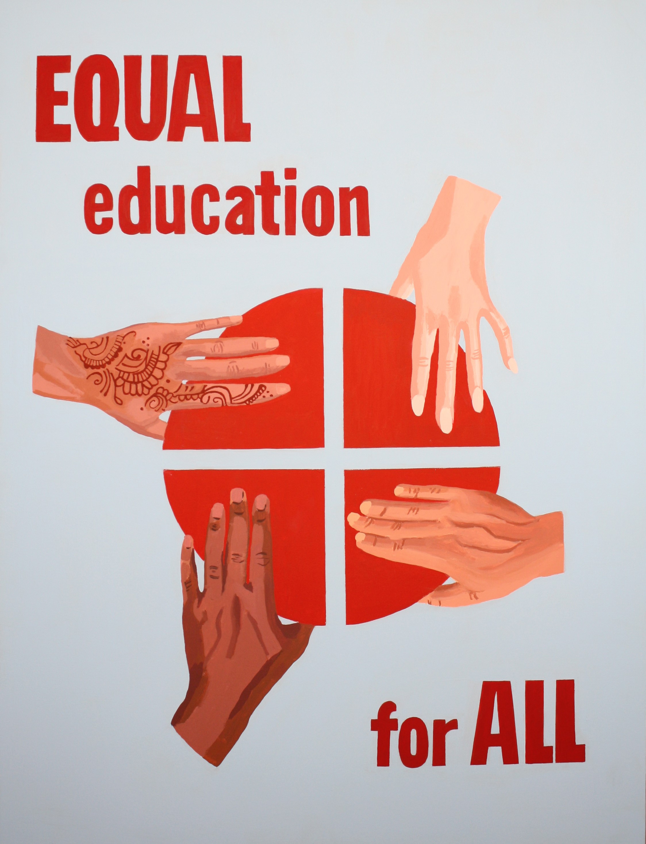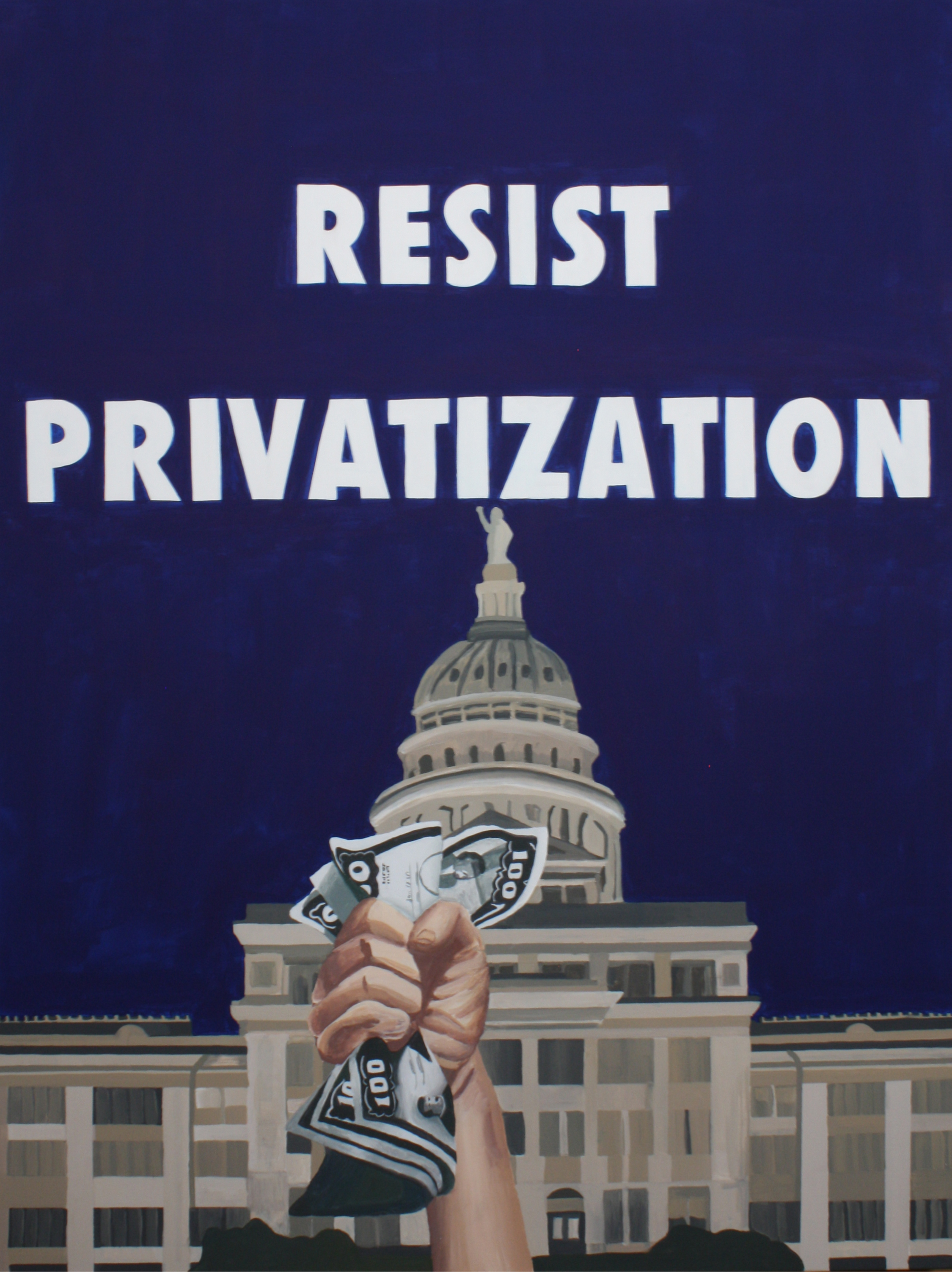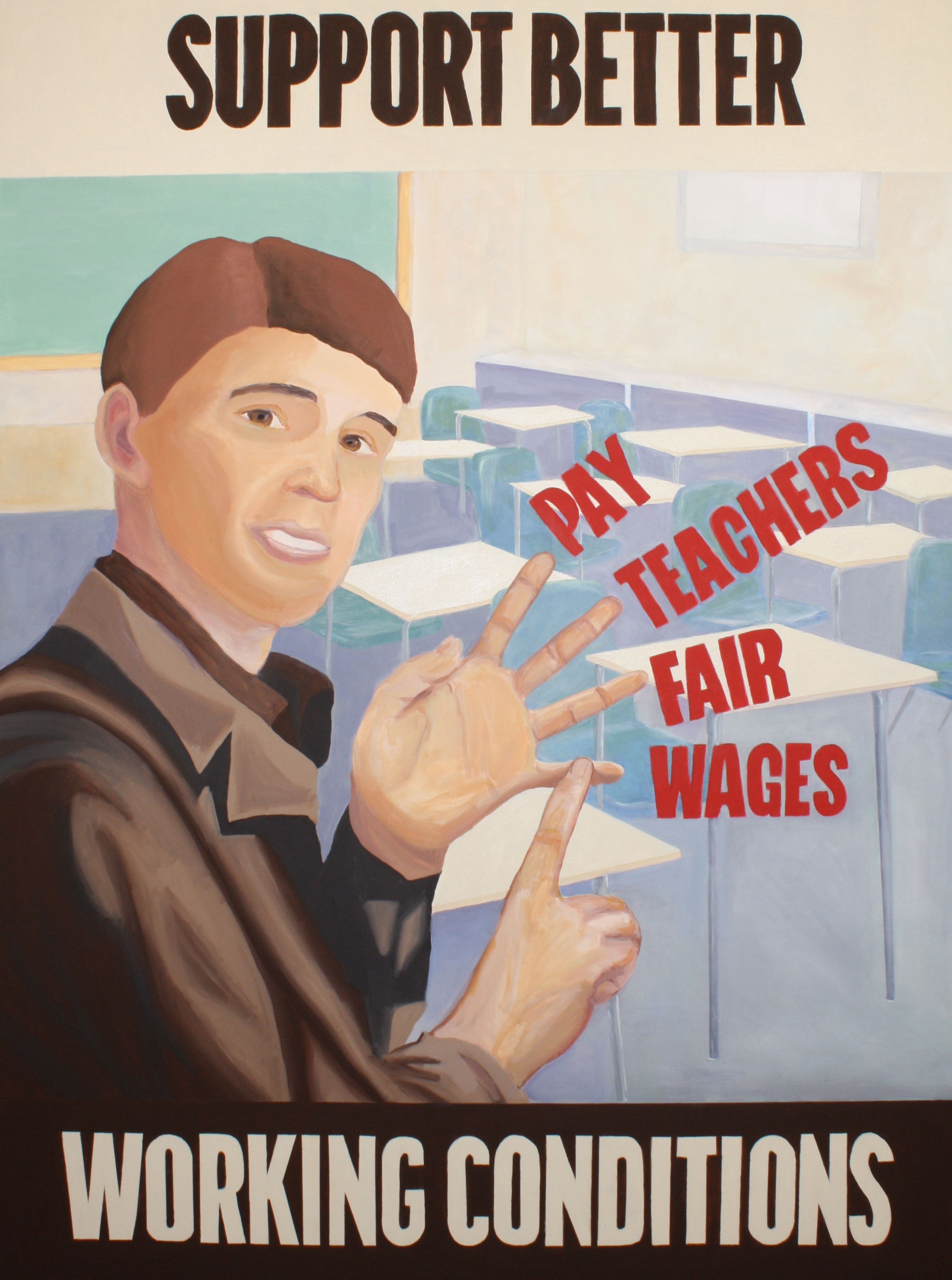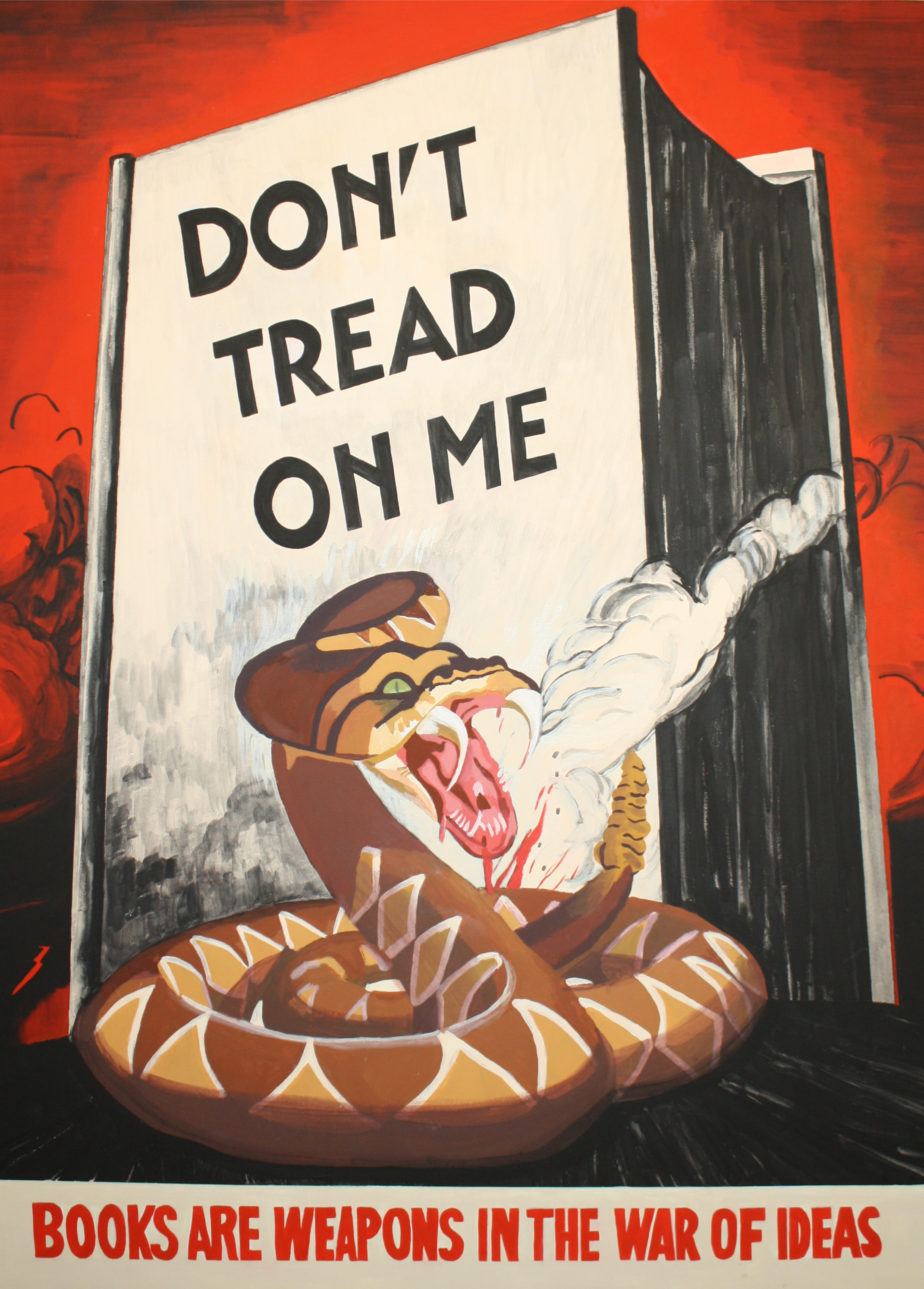 Victory at Home: The Educational Front is a continuation of the concepts in Disruption. The title of the series – an ironic appropriation of the World War II phrase “victory at home”- critiques how educational policy often plays out to a backdrop of culture wars and jingoistic language. While Disruption focused on school disciplinary policy, Victory at Home endorses actions for a more just and equitable educational system, such as disrupting the school to prison pipeline (Fill Schools, Not Prisons and Education Over Incarceration), stopping censorship of books in schools (Come and Take It and Don’t Tread on Me), exposing how the history of redlining impacts present issues in school inequality (The Thin Red Line), and issuing a warning about ideologically based curriculum (Erase History).